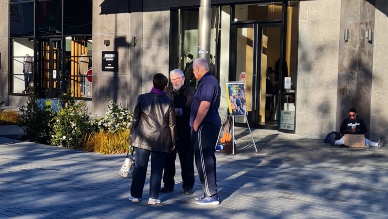 There was a guy there who listened intently, he had been interacting with some of the Christians before I turned up. Well, I went to the Bridge of Remembrance to meet Roger and do some one to one outreach there. Low and behold, this guy turns up not too much longer, and starts begging on the corner - while doing this he was reading a copy of the gospel of John.