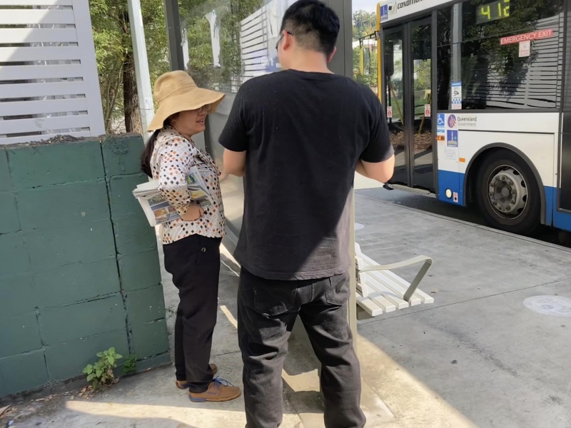 Today Hung was doing Street gospel outreach at Toowong Bus stop solo again. All other committed regular team mates were not available. The process was pleasant basically in terms of both the Spring like weather and friendliness with most gospel targets. In particular connection with two mainlanders were also delightful and fruitful.