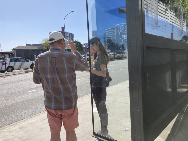 On Tuesday afternoon, in Riccarton, I decided not to bring my flip chart. Instead, I intended to do outreach at the bus stops, while Roger used his flip chart on his usual corner.