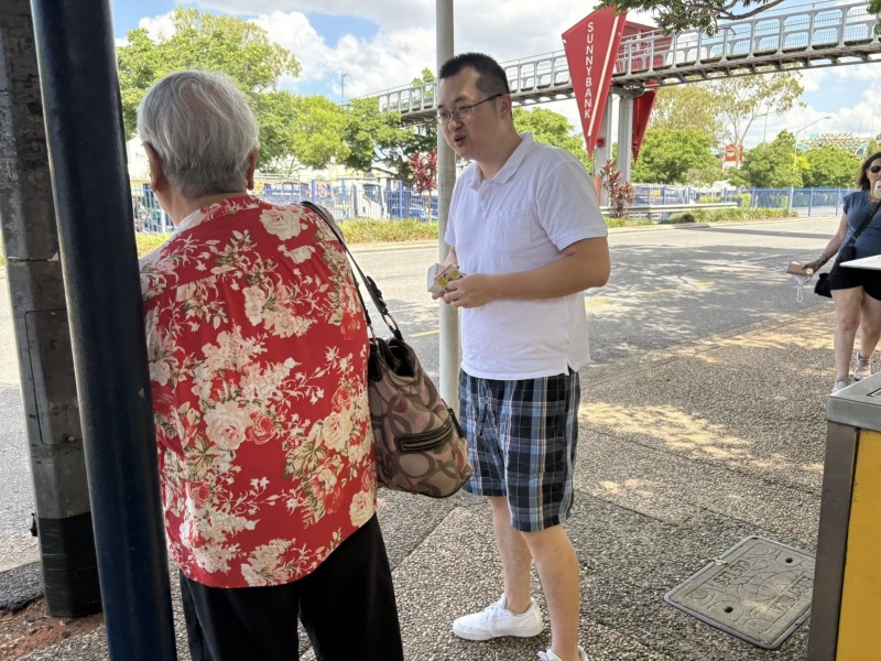 Hurrah! Edwin rejoined me to day at Sunnybank. Together, we reached great number of people. Edwin inclined to make quick chat of the nutshell of the gospel in very rush situation with the quick bus arriving schedule.