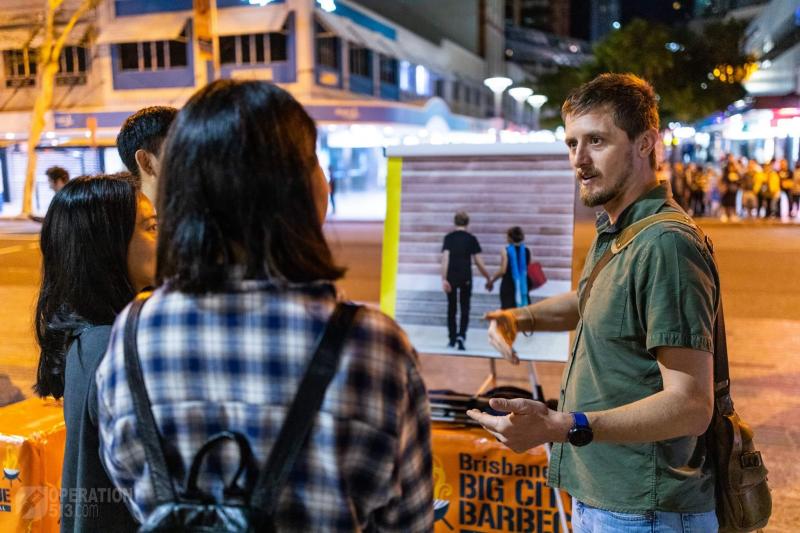 Posted 28 May 2019, 12:32 PM by Matthew Andersen. PermalinkTo encourage local Church goers to finish their night of fellowship with some evangelism after the evening service, some Operation 513 team members from other outreaches have been heading back into Brisbane City on a Sunday night for a shorter outreach to encourage and equip people who usually wouldn't make it out to outreaches during the rest of the week. This past Sunday was the third time it had happened and over the outreaches there have been nine, seven and seven people out respectively!