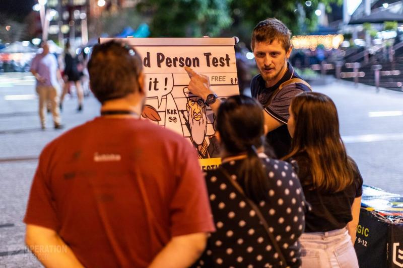 Posted 18 April 2019, 12:55 PM by Matthew Andersen. PermalinkOn Saturday in Brisbane City out came the team to tell of the glories of our God and King. There were twelve members out and many conversations had. Like usual some newer members tagged along with more experienced members and learnt some techniques and answers to improve their evangelism.
