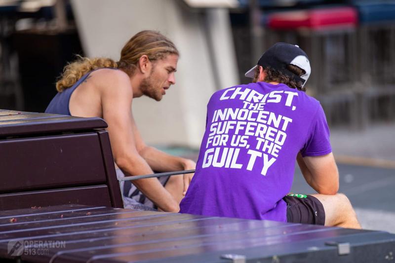 Another conversation was with Jackson, who was only on a short break from work but was shown that buildings need a builder and creations need a Creator. He responded by saying, "Twelve years of Catholic schooling and I'd never heard that but it makes sense". He was then shown the law and the problem it left him in but he had to run. He said he would try to be a better person but was told that wouldn't work and was given a tract and encouraged to read it to find what God has done to save sinners.