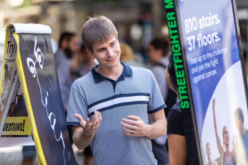 Posted 4 April 2019, 10:16 PM by Matthew Andersen. PermalinkWednesday afternoon in the city came with surprising rain showers that would clear the square in a matter of moments. But this meant that the team could find conversations under cover quite easily. Again there were seven team members out, three of whom came down from their local offices during their lunch breaks because, to quote one of them, "There are things more important than burgers in this world".