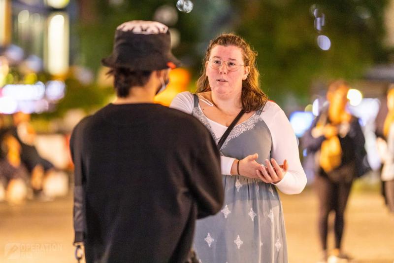 Saturday night in the city was a thrill of an outreach! The levels of people out are basically back to normal and the result is lots of gospel conversations! The team of fourteen met up, prayed together, and spread out through King George Square and the nearby areas, seeking to engage people with the gospel.