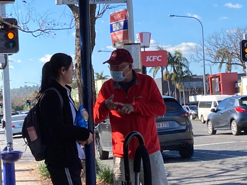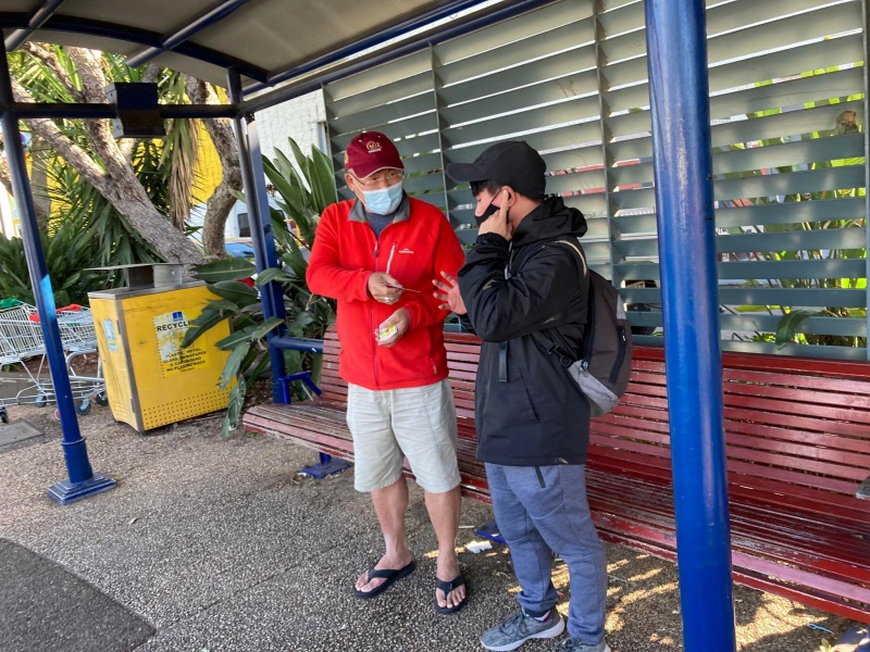 Today, all others still got sick or occupied in some other business so only Johnny and Hung were turning up for the regular Wednesday outreach at Sunnybank. Johnny was late for taking his car for service, so Hung started alone first for a short while and later joined by Johnny. Here in Sunnybank, the rejection rate, especially from Chinese is high. Nevertheless, we take it as a training for faithfulness and perseverance to hardship still hanging on by faith to fish for the next available gospel target. Hung's day started with grace to meet up with an old church member. Recap below is Hung's Battle Log.