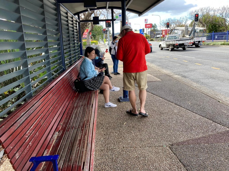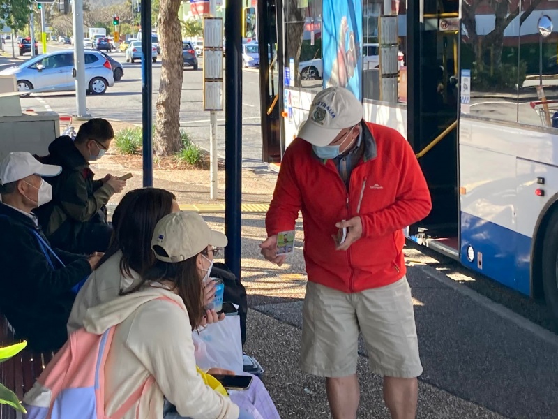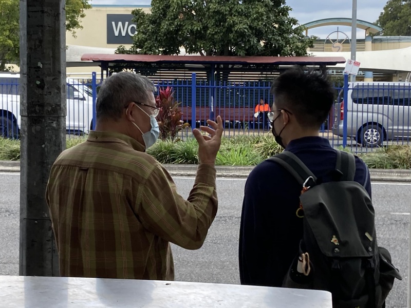 3) A young man just arrived from Shanghai to study at UQ上海男孩剛來. He was OK to chat but the bus came a bit too quick but he still willingly took a tract.