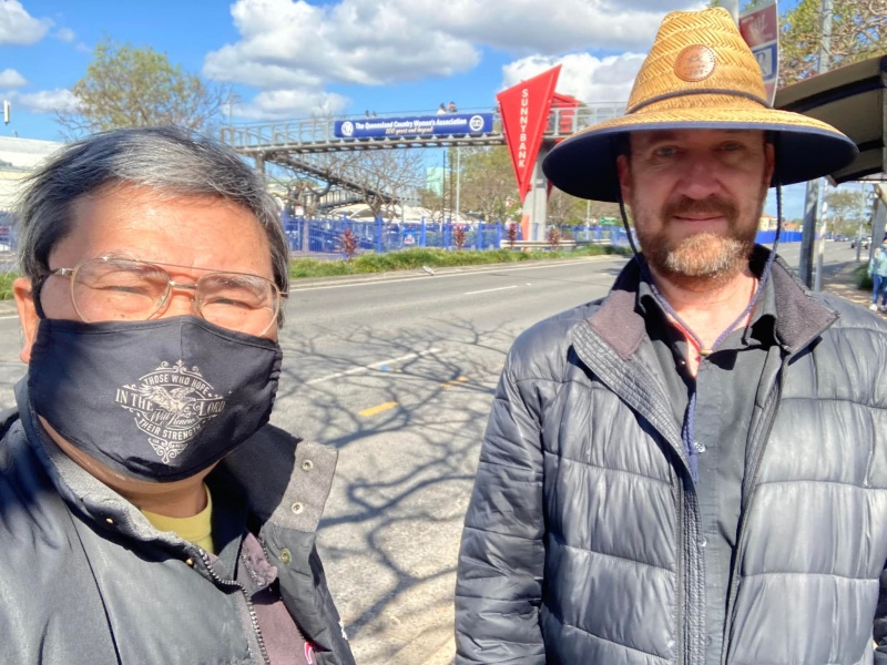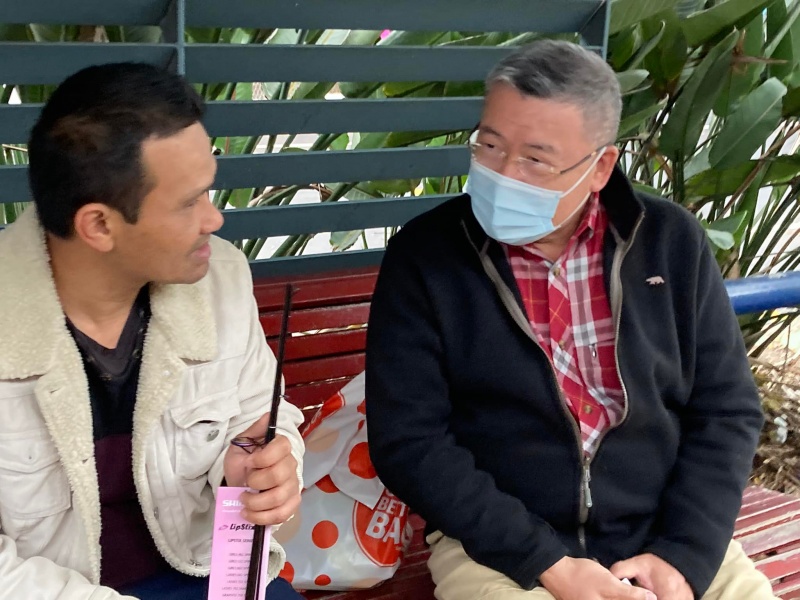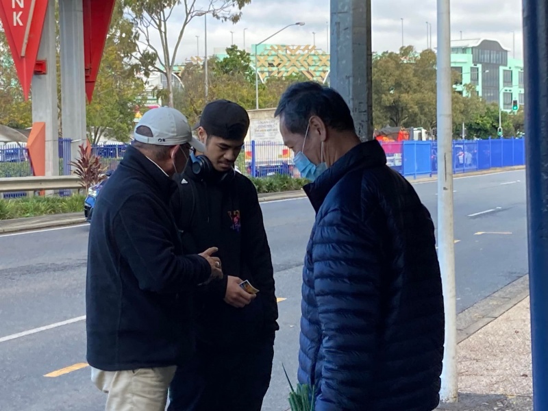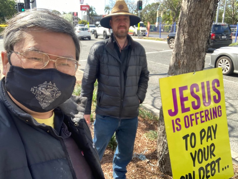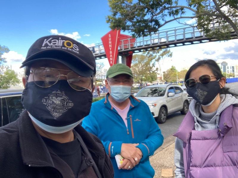 It was yet another fine weather afternoon good for open air outreach. It was sorry to have two regular members kept absent because of illness of self and family members. But God gave Johnny and Hung a surprise by calling and moving an old OPN 513 advocate and past team members Joe Chai to re-join us. He actually used to be the best spiritual friend of Johnny's son Michael. Both of them were once active in street outreach but later on moved on to other job and ministry. Joe worked with Evangelical Students in Campus outreach and some other outreach ministry of his church. Since the Pandemic, he is one of the work- from-home new social species. Through the Battle log of OPN 513, he got updated of our now limited street outreach while majority of OPN 513 folk have switched focus to online evangelism. Finally, God moved him to join us today while we are short of two regular hands. He actually takes one hour lunch break to rush to Sunnybank to join us from his new home now in Runcorn. We were most impressed by Joe apostolic passion to sacrifice his lunch hour to do His work. God is great and we are privilege to be His vessel for the proclamation of Gospel.