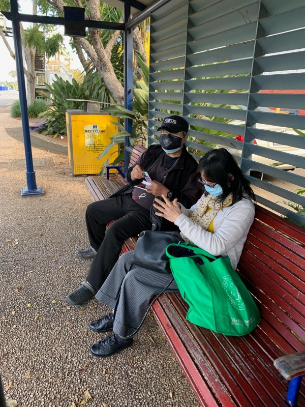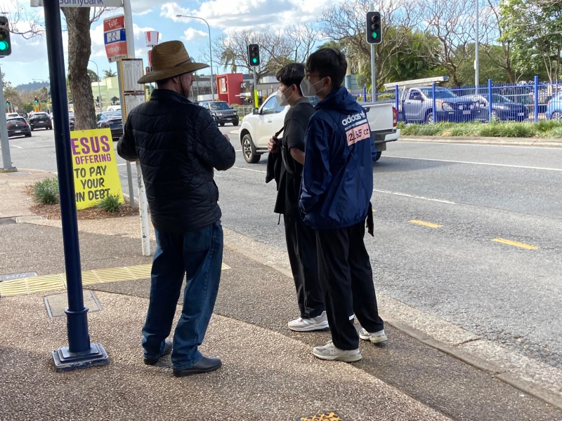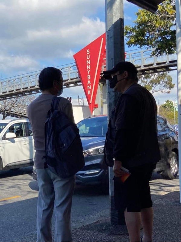 Today, the weather continued to be good. We had four persons turning up to serve at Sunnybank. So, Johnny and Gary teamed up to serve on the East side while Amy and Hung stayed on the West side at the Bus Stop. Again, God gave many meaningful and fruitful divine encounters to us. Recap is the Battle Log of Hung.