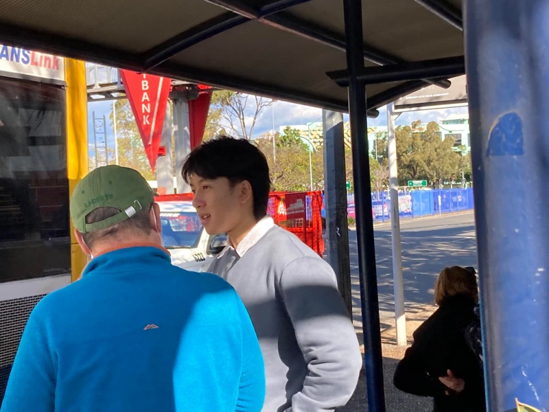 4 )Then Amy referred Jason Ni 倪嘉翔 to me after having a long chat with this young man from Beijing and then Auckland of New Zealand. He is an UQ student but live off campus at Uni lodge. He and his mother had been to church in Auckland and actually he studied Catholic high school in NZ so he is aware of Christian faith yet not a committed believer. Amy asked me to cut in was to introduce him to Power to Change. But I was moved to share the gospel once again with him and invite him to come to our church as Woolloongabba is the midway interchange bus terminal to Cleveland taking only 20 min to our church. Pray that our long chat will move him closer to the last step of faith. Amy said he was very drawn to have conversation with us as he had chosen to miss several buses but kept talking with us.