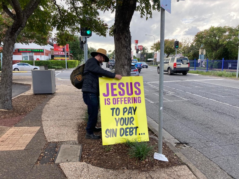 Praise and thank God we had Gary and Amy re-joining the Sunnybank team after the school holiday to form a three persons team. As usual, Gary set up Gospel sign to draw attention of pedestrians. Amy was good at chatting with young people while Hung mostly with the elderly today although it might not be a pattern. But today's experience led me to ponder the elderly people in the church are less equipped with very insufficient discipleship sort of teaching. They are full of weird thought and wrong teaching of the bible doctrine. The worse is, many of them are not yet saved without a clear understanding of the salvation by grace through faith in Christ and still considered good deeds are all we must care for rather than our mere faith in Christ. One good thing that can cheer us up was that, a group of Indian or middle East face people that Gary had approached at the far end of the bus station. After they finished their chat and walked past me when I was sharing gospel with Debbie, they gave us thumb up and laud praise by saying Hallelujah to the Lord as an affirmation and encouragement of our work for and with God. Recap is the battle log of Hung for today.
