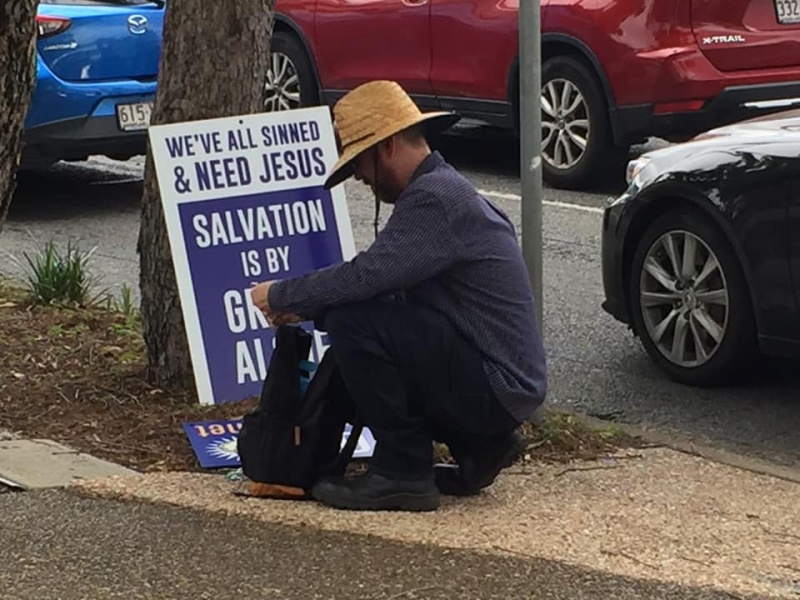Gary re-joined Johnny and Hung today at Sunnybank after spending time with family during the school holiday. He even came earlier to set up a new sign he made on the East side of the pedestrian bridge. Johnny and Hung joined him first in the East side for an opening prayer. Then we returned to the bus stop on the West side. Gary came over to join us for a while in the West side before he finished for the day. Basically, all of us had considerable number of chats with mixed result. After all, God reigned and the gospel message has been passed on to many non-believers and assurance of salvation be reinstated for many nominal Christians. Recap below are the battle log of Hung: