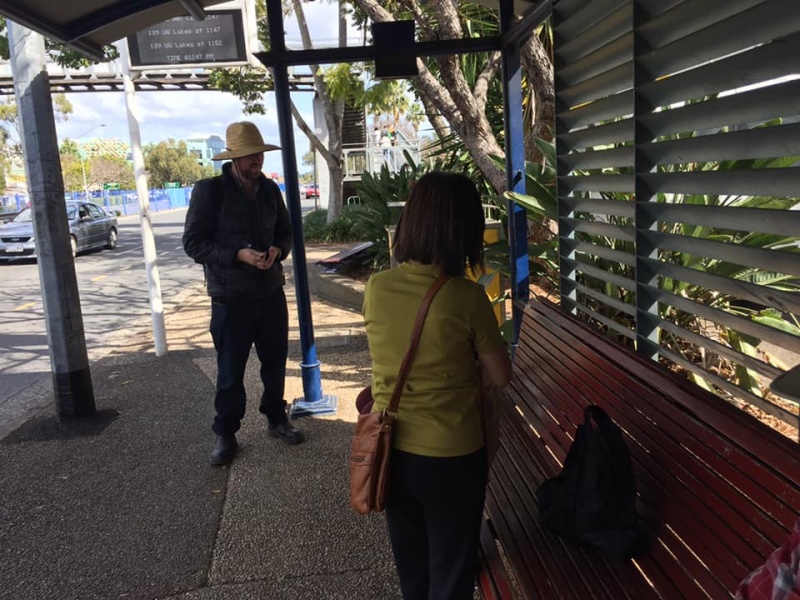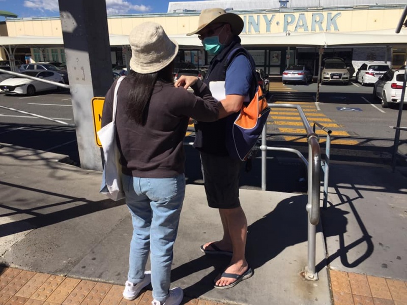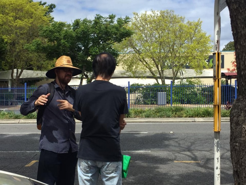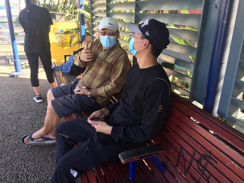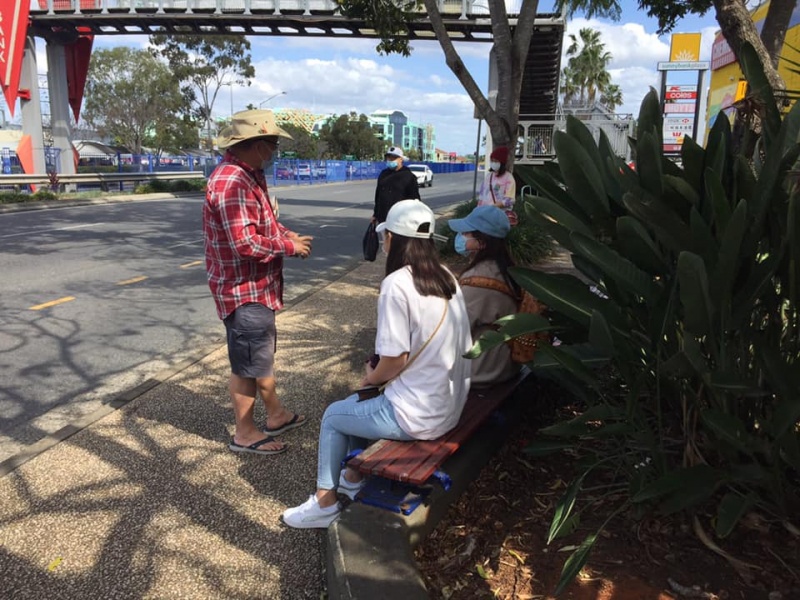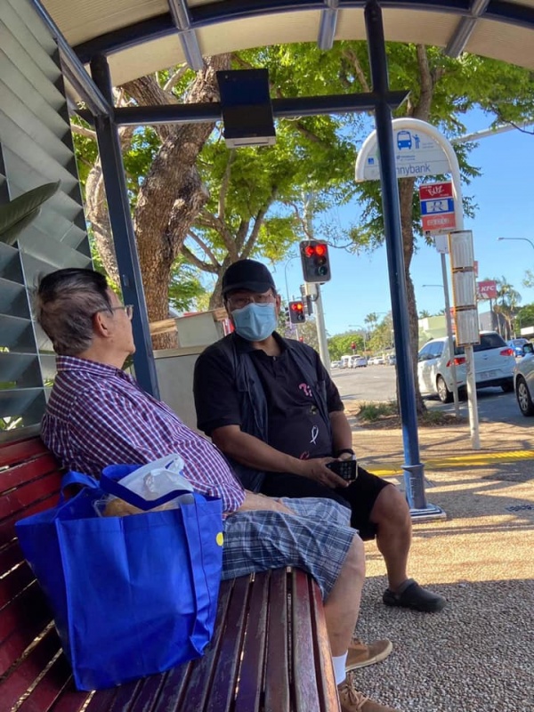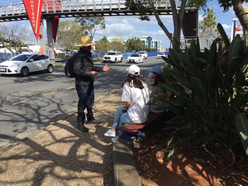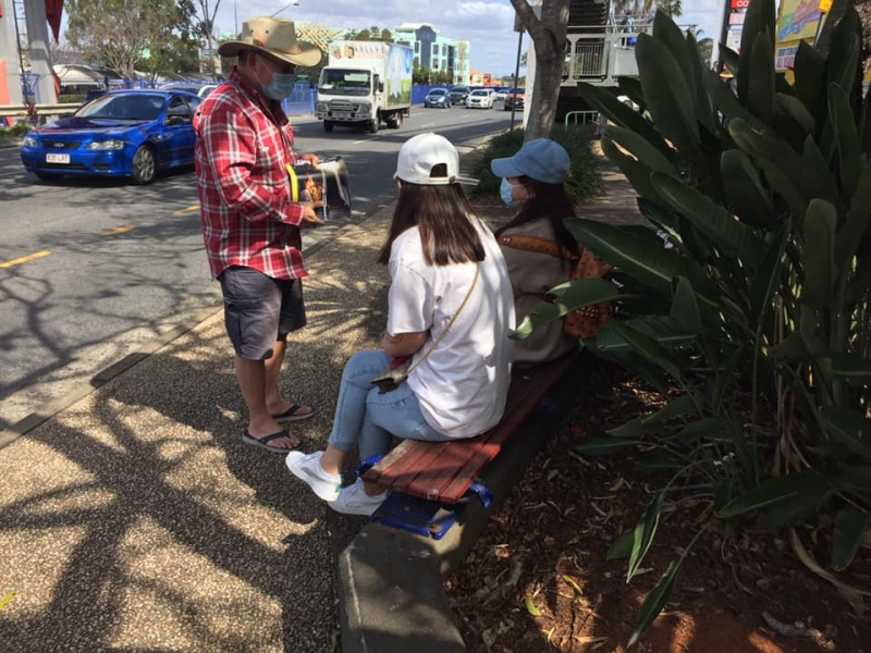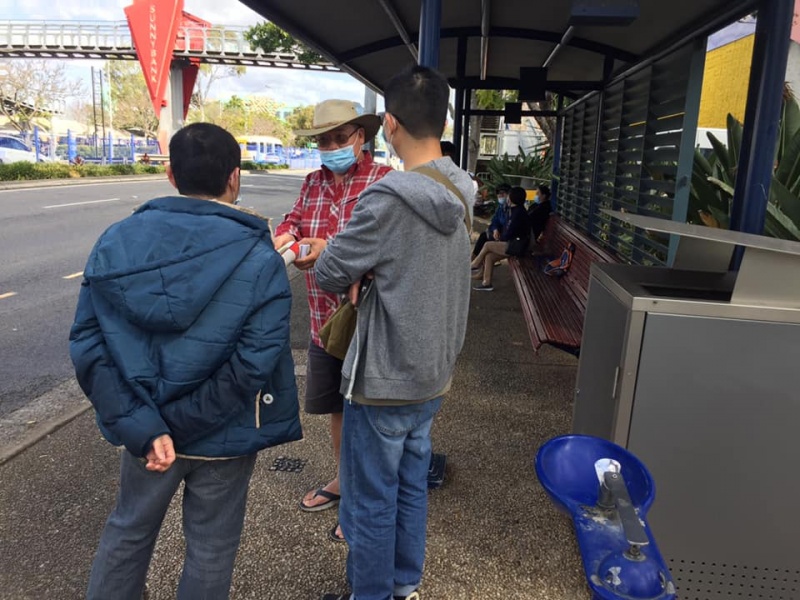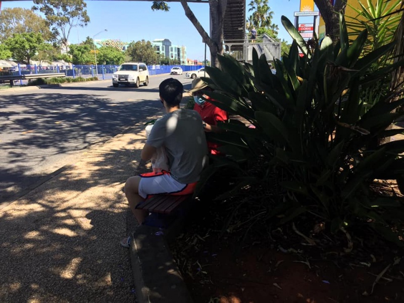 It was still a warm early Spring but temperature already dropped to a pleasant level for open air outreach. It was still just Johnny and Hung teaming up to serve at the bus stop on the west side of the China Town complex near Sunnybank Plaza.