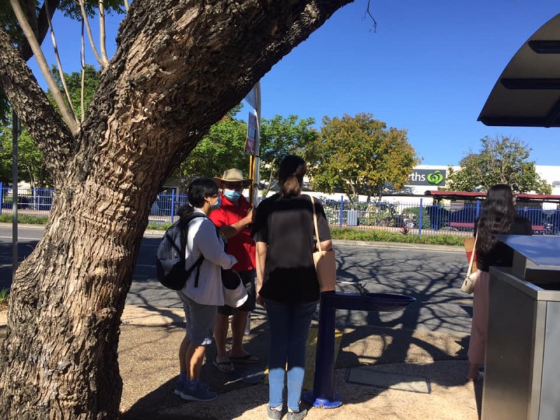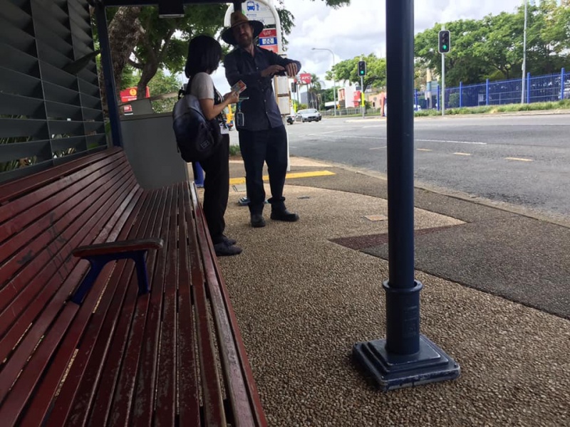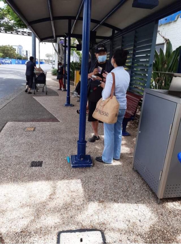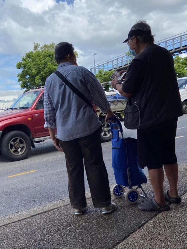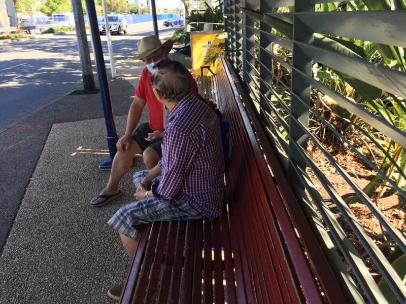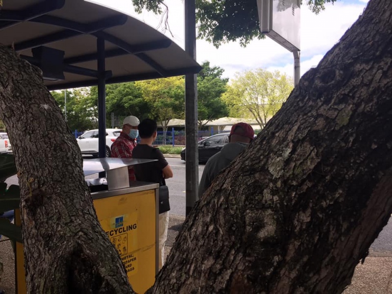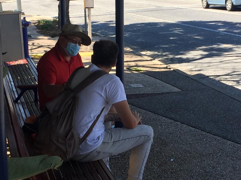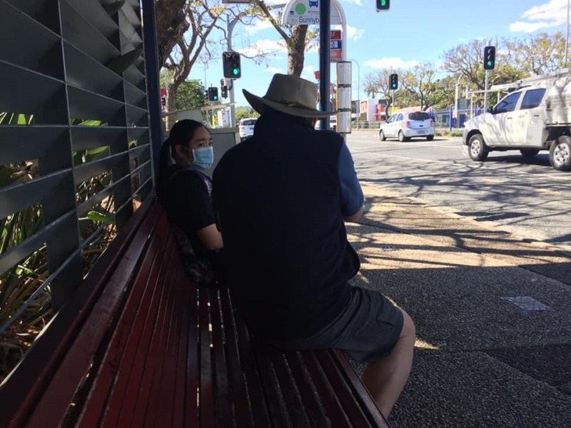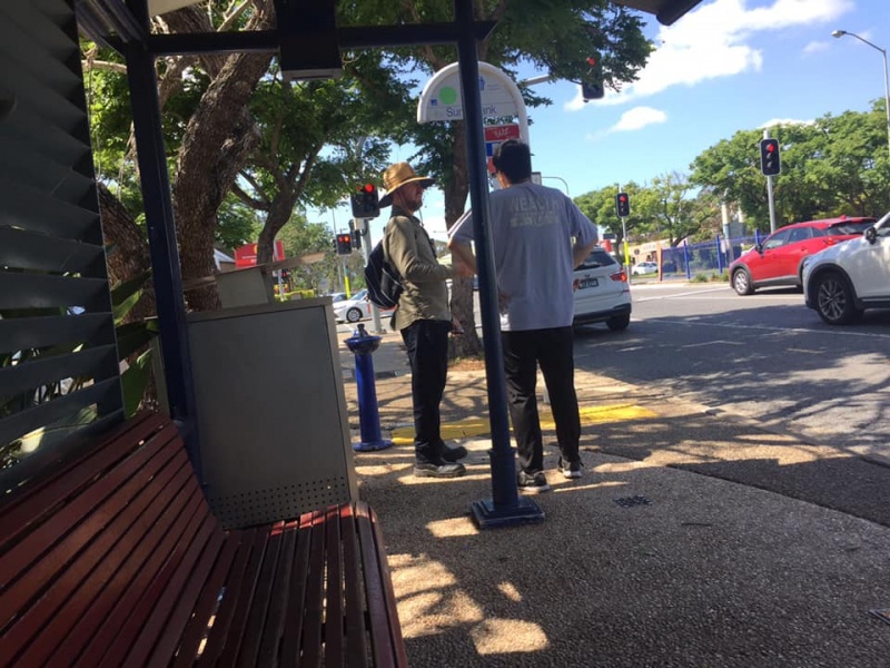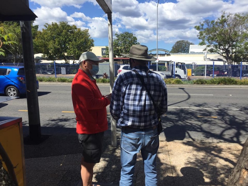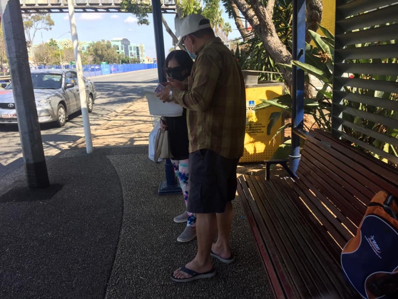 It was still a warm early Spring but temperature already dropped to a pleasant level for open air outreach. It was still just Johnny and Hung teaming up to serve at the bus stop on the west side of the China Town complex near Sunnybank Plaza.