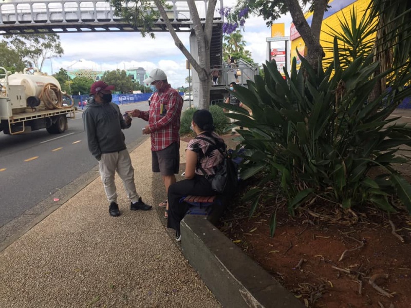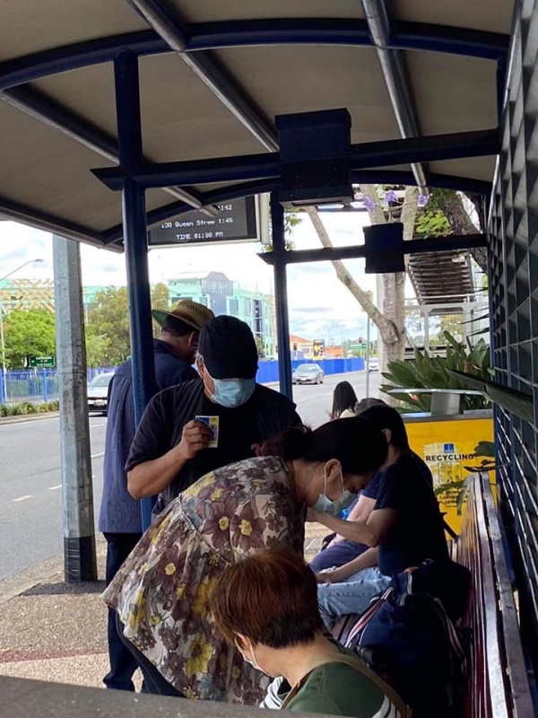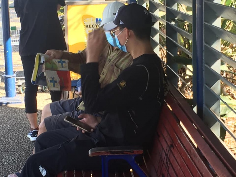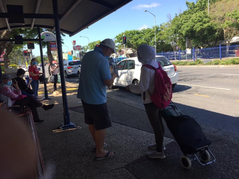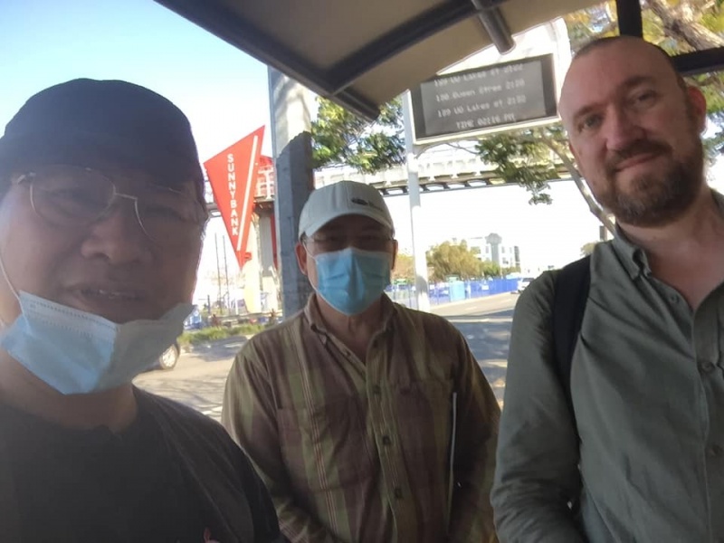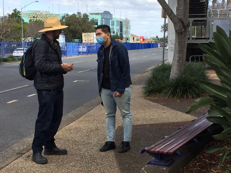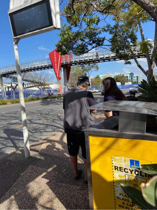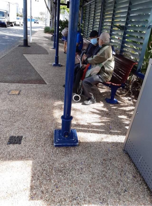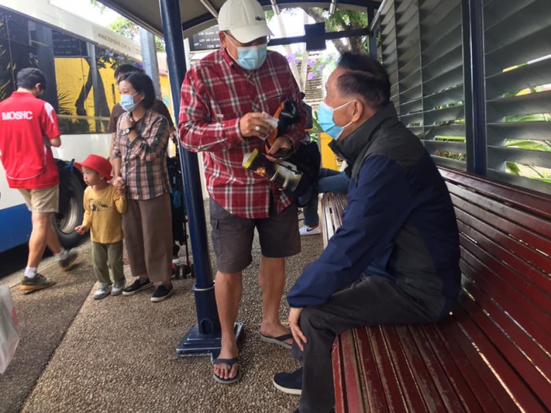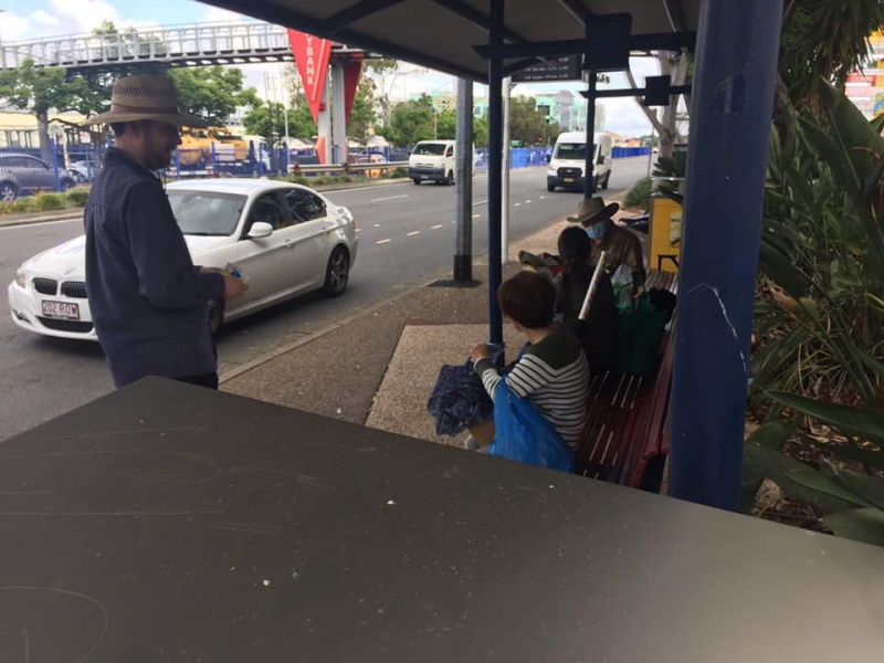 It was still a warm early Spring but temperature already dropped to a pleasant level for open air outreach. It was still just Johnny and Hung teaming up to serve at the bus stop on the west side of the China Town complex near Sunnybank Plaza.