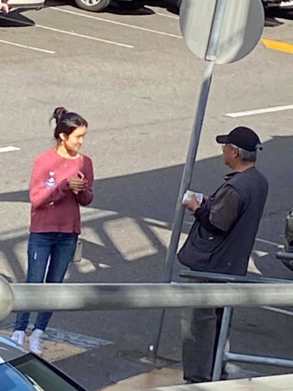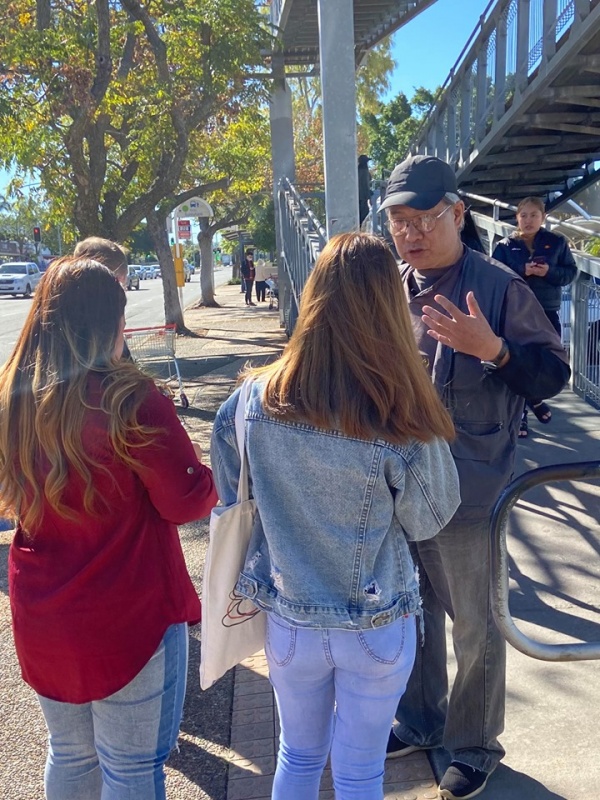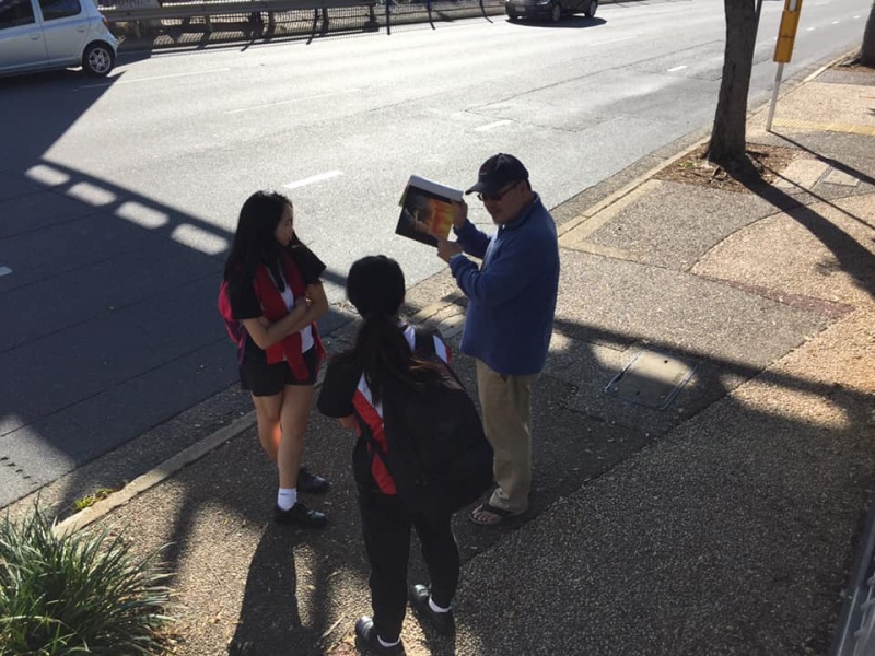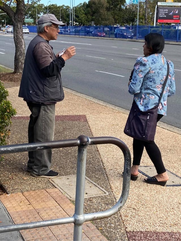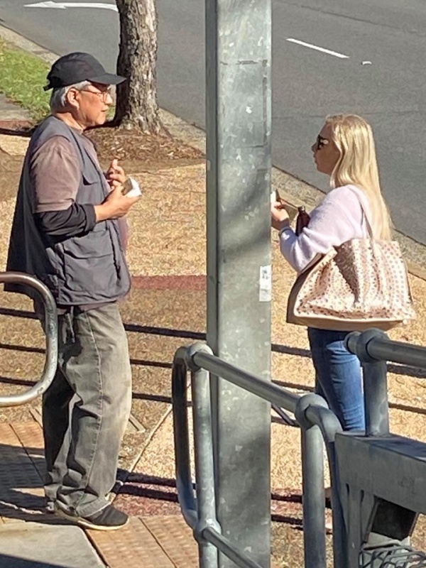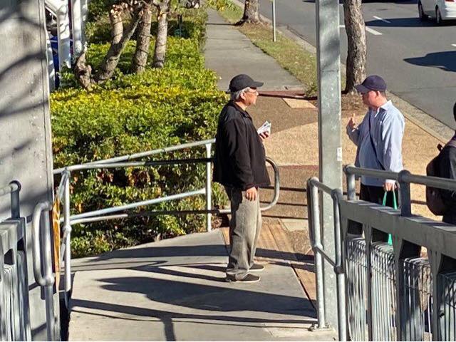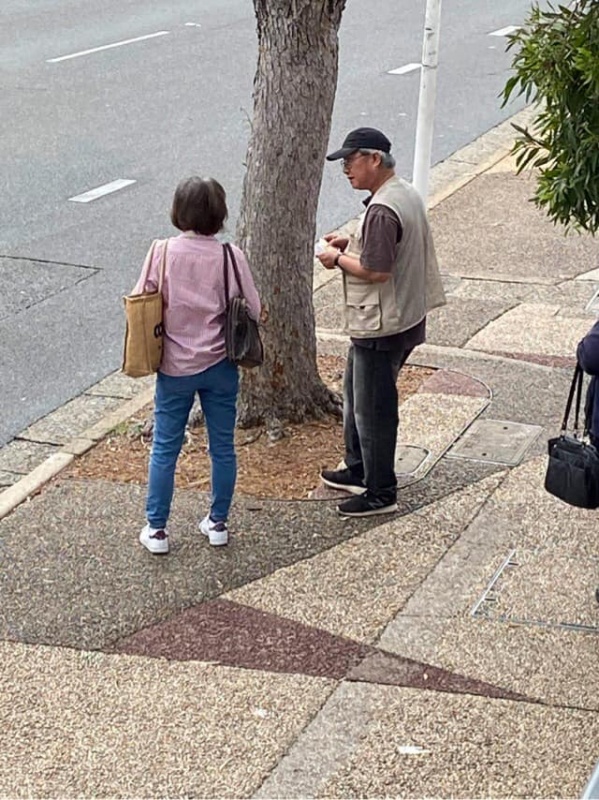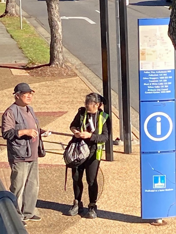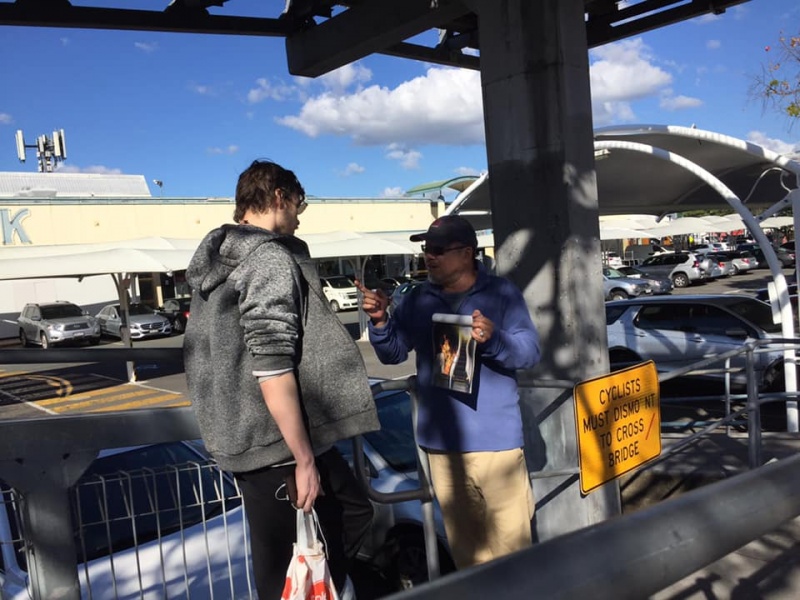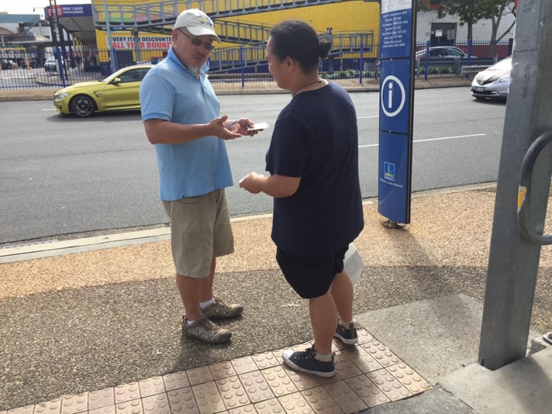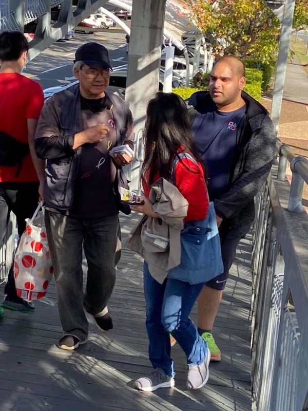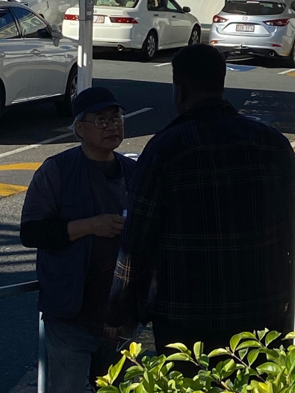 2) After seeing that Girl off, I noticed a lady in mask looked at me with a grin smile. Actually she took initiative to greet me and said we met before. With so many people met every week, I asked if it was last week or last month. She laughingly said it was two years ago in 2018 and prompted me that we had a long chat on matter about mission. Then my vague memory came back that it was Moon Suk a Korean Christian Girl who are curious in mission work and admire our persistence to do street evangelism every week. She said she actually had been watching out during the past two years and noticed we are the rare Asians amongst the local Westerners to preach Gospel to people of all nations on the street competing with the Mormon who are active here. She said she is a member of the Korea Presbyterian Church in Sunnybank. We parted with blessing for each other to continuously serving our Lord as led by Him. (Johnny later told me, Moon Suk declined to take tract and did not stop. So he was a bit curious how come she was willing to talk to me)