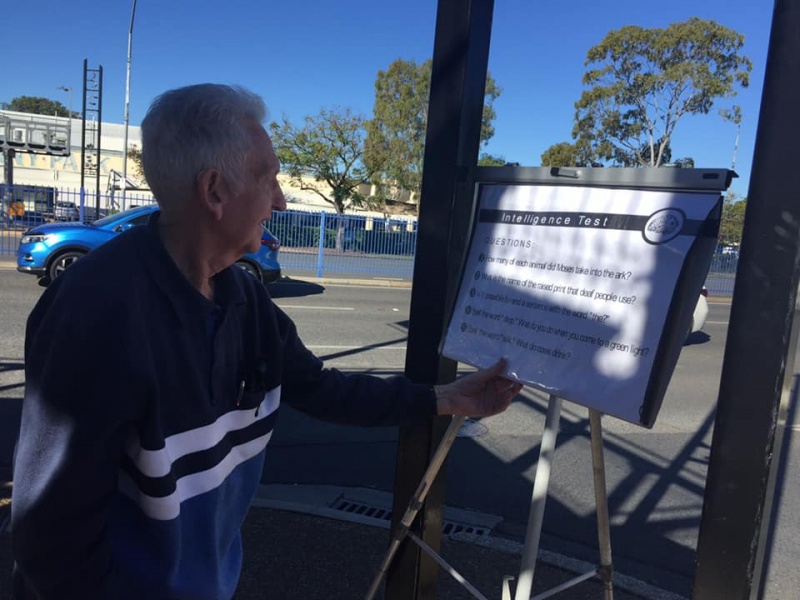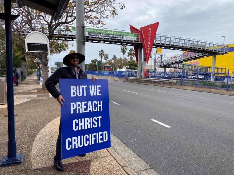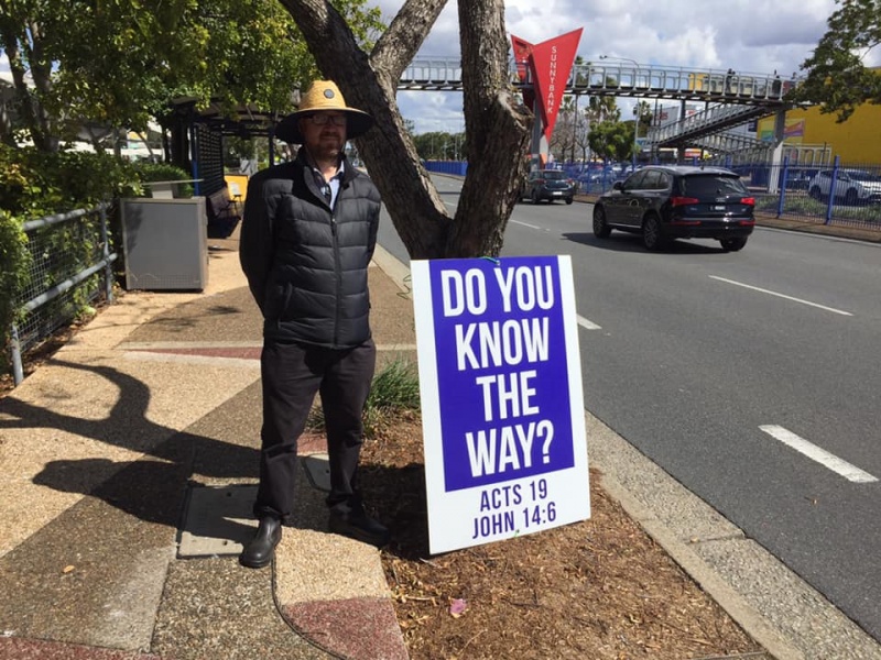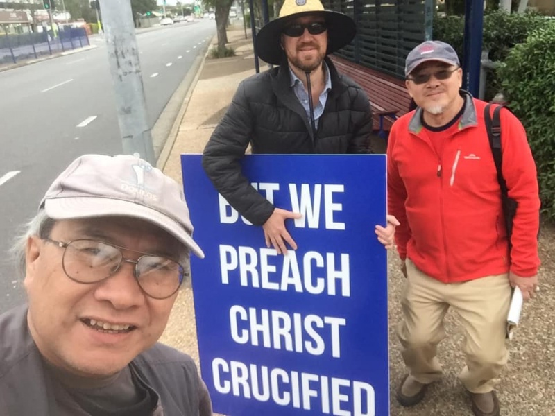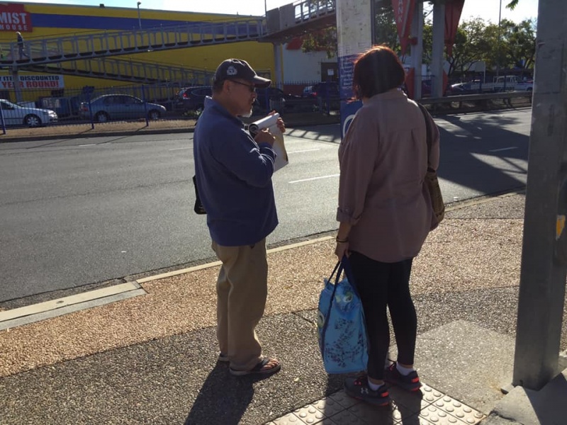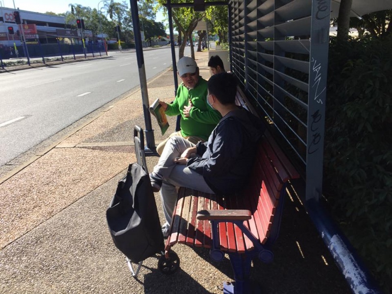 Praise and thanks God for calling Gary to join Johnny and Hung this afternoon at Sunnybank to witness for Christ. Gary made two big sign and showed it near the bus stop to both the passengers getting on and off the bus as well as attracting attention of the ongoing traffic. God definitely will use his such extraordinary acts to impress people that the message we share is utmost importance to their eternal wellbeing.