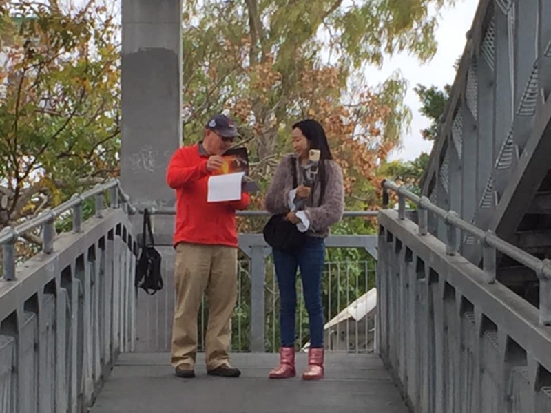 3) A man by the name of Han 韓from Shandong, mainland China山東,he came for work and has been in Australia for two years 來工作兩年. He initially was reluctant to stop but still allow me to walk and talk across the bridge. I ask if he had heard the gospel before and how di he find it. He said it was his first time hearing gospel but he acknowledged that what I shared was understandable and sensible.完全明白,He sincerely thanks me and promise he will consider after reading the tract later.願考慮接受。
