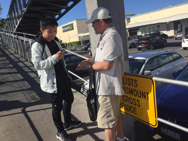 6) An UQ student by the surname of Huang is from Guangzhou China. He did not prepare to stop not to mention a long chat but eventually chat for a long long time over half an hour. He noticed my accent of Mandarin and chose to switch speaking with me in perfect Hong Kong style Cantonese as his father is actually a Hong Kong Citizen. It helped to draw us closer for deep talk apart from the Gospel. I shared also my testimony of salvation and appealed him to response to the guide of the Holy Spirit like I do while living away from home and out of his own comfort zone. (黃廣卅港爸) After my long chat, God moved him to have another chat with Col. Pray that the Will of God be done for Huang.