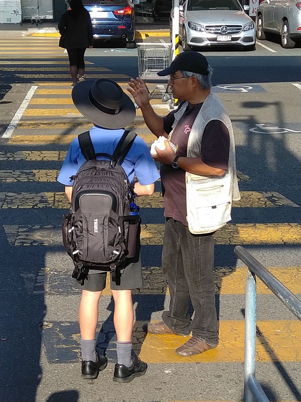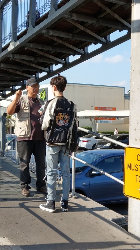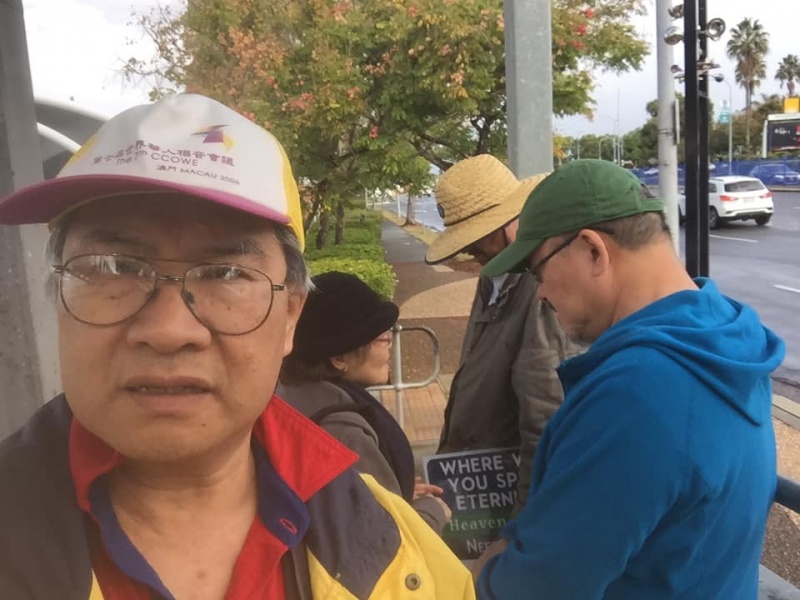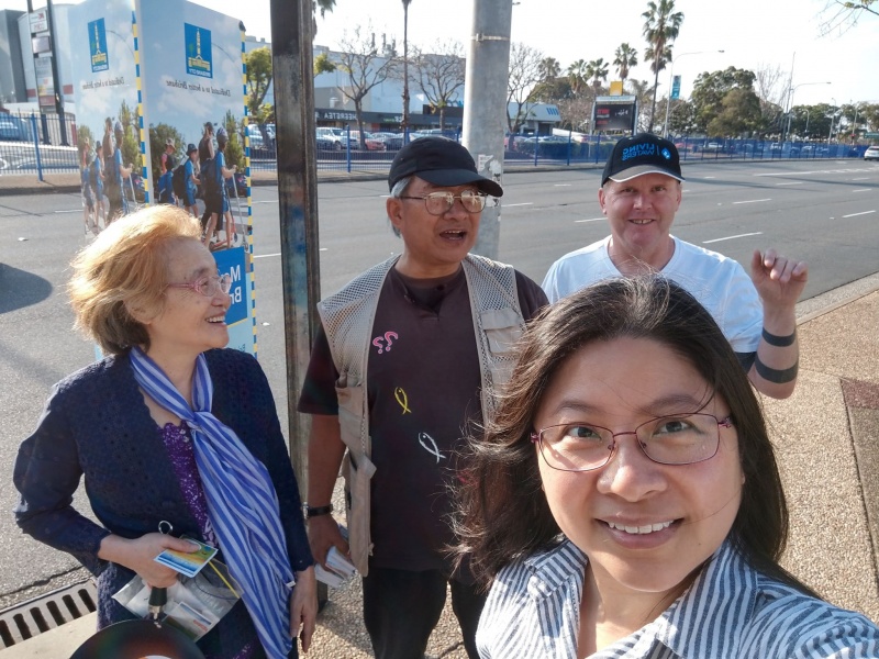 感謝天父上帝的帶領和祝福, 關牧師和我再一次開始南區Sunnybank 街頭福音事工,今午有兩位簡、魏Working Holiday 的台灣同胞,嚴姓大學生,還有Tammy Lee, 他們都停下了腳步,聽到了福音, 祈求上帝保守賜福,拯救那願意為罪悔改並相信耶穌基督的人。