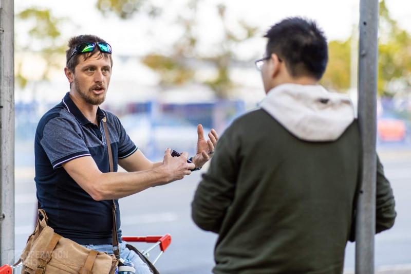 A tall local Aussie initially avoided to stop and talk, but finally let me to use the walk and talk tactic to finish sharing the Gospel. His attitude greatly changed at the end and appreciated my companion and the tract.