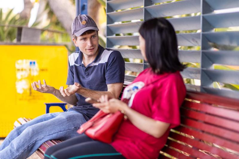 The next conversation was also with Jason. He had spoken to the team last week and had gotten to hearing the gospel but the chat had been cut short by the arrival of the bus. This week it was picked up where it had left off and came to hear that trusting in Christ alone is the way to Heaven. He was able to explain that back and then asked, "Doesn't that encourage people to do the bad things?"