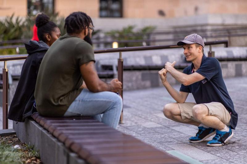 The rest of the afternoon went by and a scattering of other conversations took place but after dinner as usual the team headed into Brisbane City. At around 8:30pm the renovation works in King George Square were so loud that the team migrated into the Queen St mall to have some conversations. There again were some exciting and encouraging conversations. But just after 9pm, on the return trip from the bathroom Kimeal was spotted walking towards the team. She realised who I was and then we proceeded to chat.