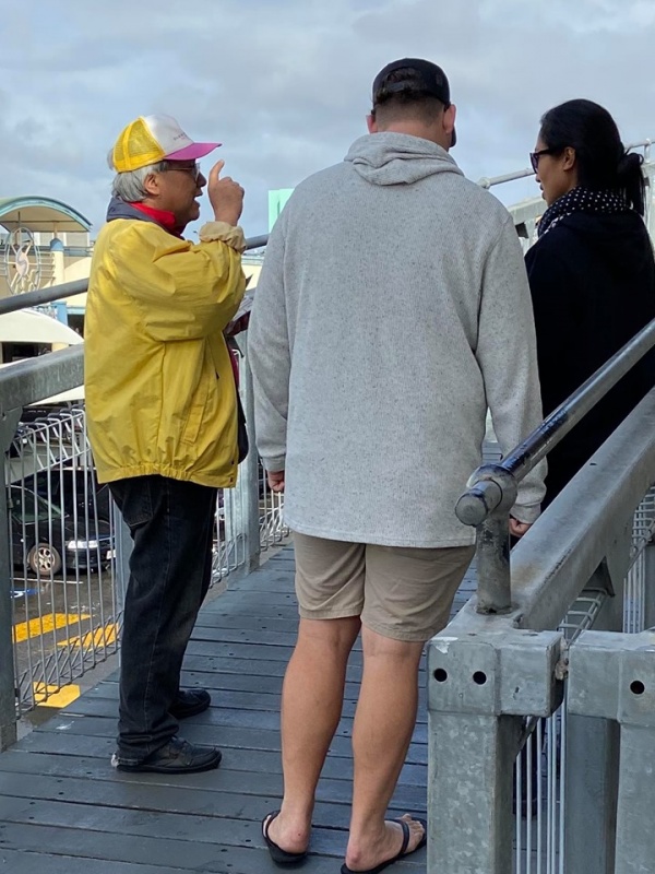2) Another HKG couples with the husband appeared very anti-religion. The Wife behaved better to reluctantly let me share full gospel with her with a by stander from China listening together. Pray for God's work on them after hearing the Gospel. 又是香港老夫妻丈夫不願聴,妻子還是聽了,也略勉强,求神作為,旁邊也有一華語女士聼了,求神有祂的美意。