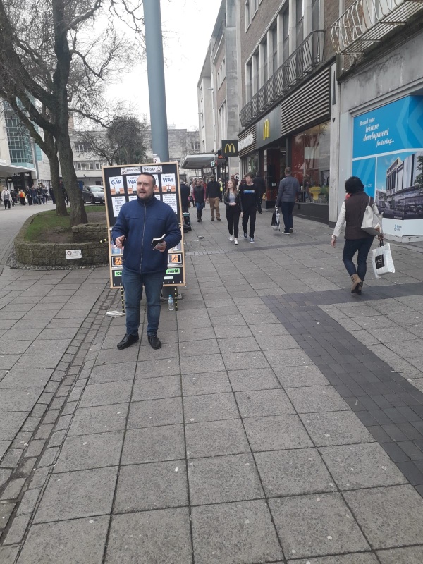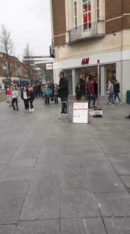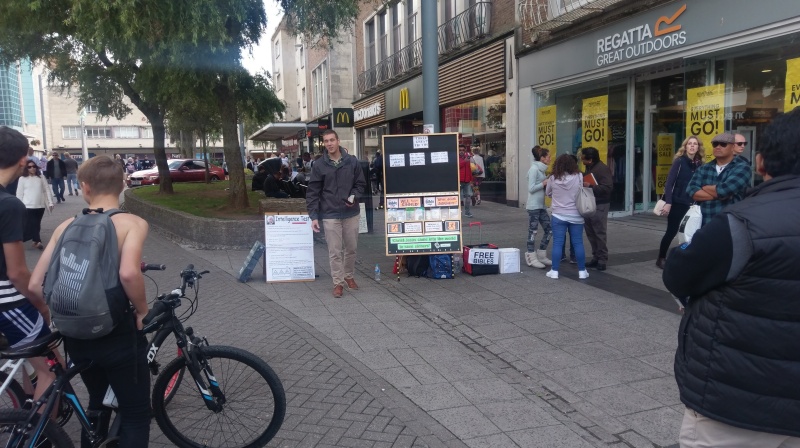 On Saturday 23rd, Harry, George and I met up in the city centre for outreach on a beautiful sunny day with no wind and lots of people around shopping to talk to.