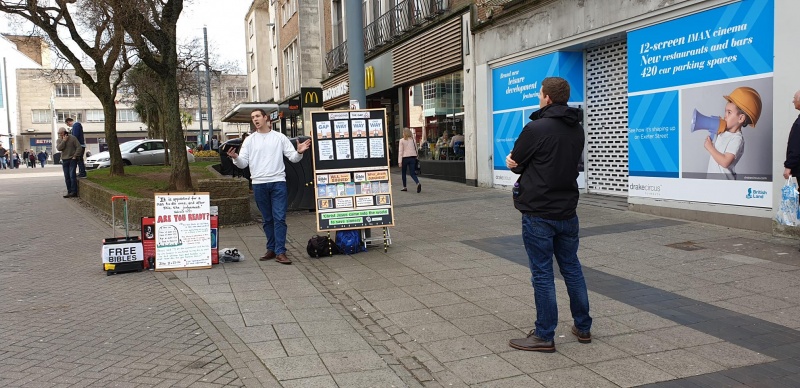 On Saturday 9th March, Simon and I went to Exeter for outreach which is the next biggest city to Plymouth, a population of around 150,000 and always seems to have a good response when we go there to preach and witness.