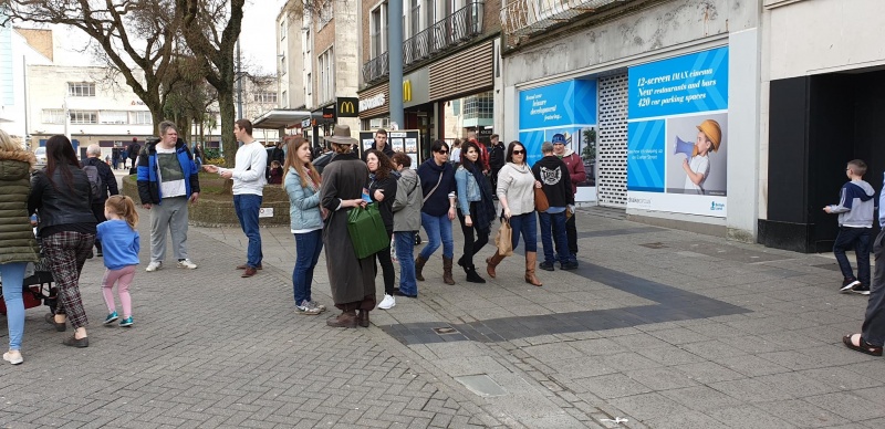 A couple of weeks ago a group of us met in Plymouth City Centre from 11-2.30pm to preach and hand out tracts to passers by and talk with people who would stop to see what was going on. Our team in Plymouth consists of four people, but we were able to join up with the Sons of Thunder, George and Harry from Faith Mission, as well as an Indian family they had met that have a small house fellowship that I had met previously when working for Dominoes (a few of them are delivery drivers.)