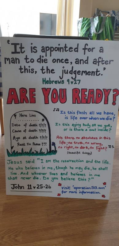 This led to a couple in mid twenties walking past and stopping to read the intelligence test and a long chat for around 15 minutes as to why Christianity as supposed to other religions, the age of the earth, and life after death according to what the Bible said.