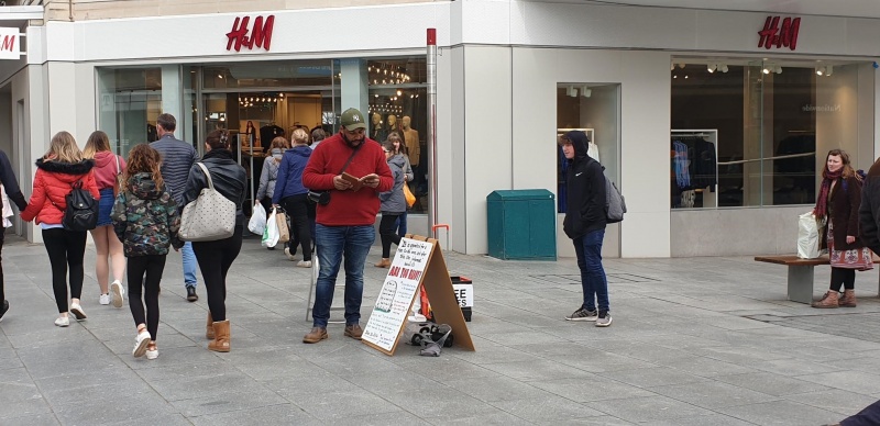 It was a fantastic day with lots of great encouragement from some Christians that walked past and many tracts handed out and fruitful conversations. God really blessed us with good weather and an open square with not much going on which allowed room for people to stop and think about the message we were preaching and we were praising and thanking God on the way home for such a good day! SDG