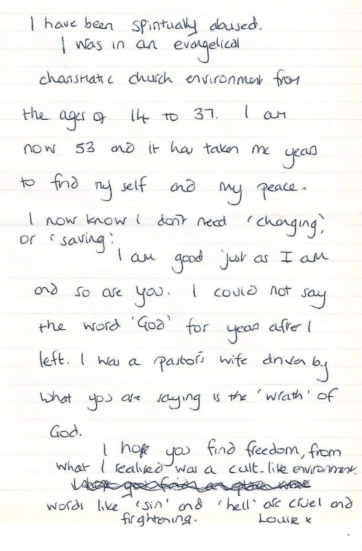 Something unusual happened whn Simon was preached- a lady gave him a hand written note, and we read it together afterwards which is attached. It seemed to show she had been brought up in a legalistic Church and had obviously affected her in a negative way and led to her renouncing the Church which is most unfortunate, but she left quickly without us having a chance to talk to her about it.