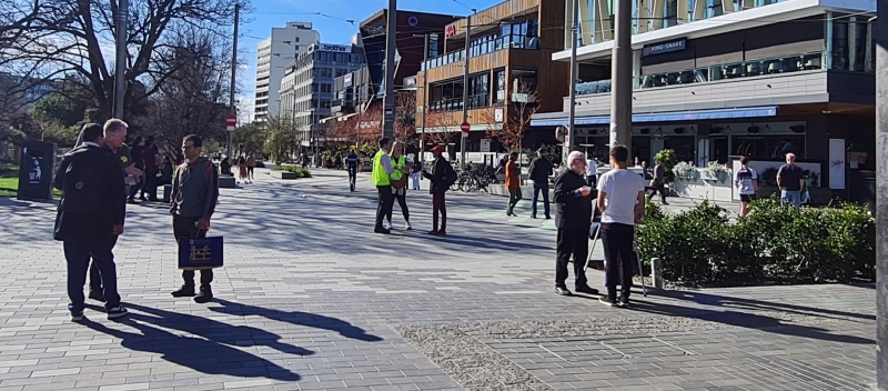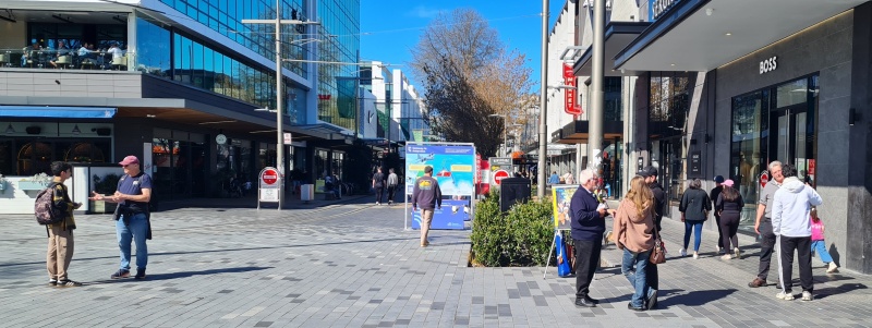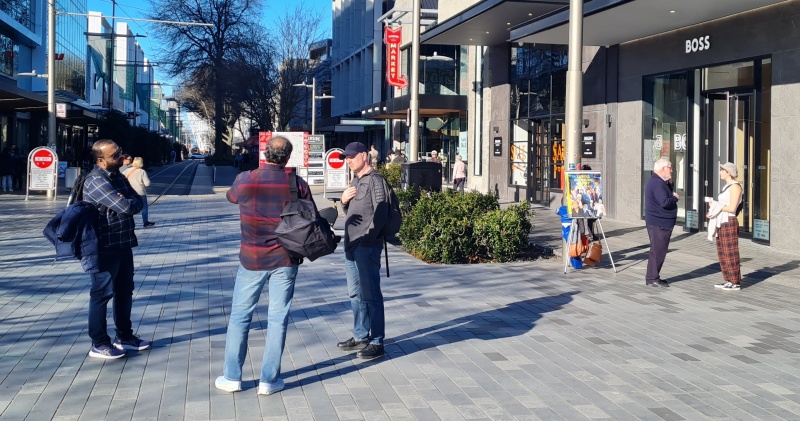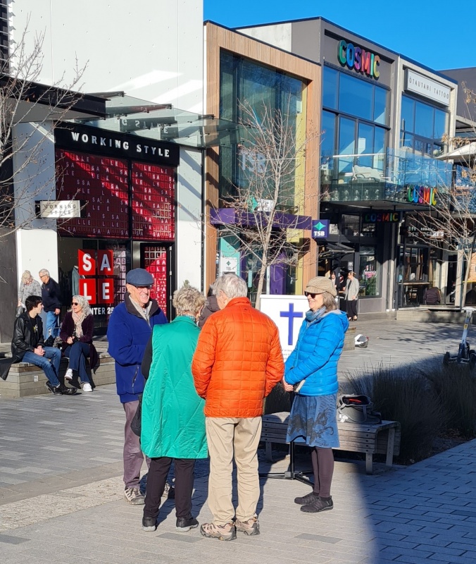 In March, I was doing some online evangelism training with Fran. She lives in NZ too, and she just so happened to be coming down to the city I live at the beginning of April, and so we organised for her to join a street outreach. On Friday the 4th, she joined Roger and I on a sunny afternoon outreach on Cashel Mall. We had a great time having gospel conversations and giving away tracts. Roger had his flipchart going, and Fran was able to see how it worked.