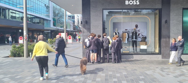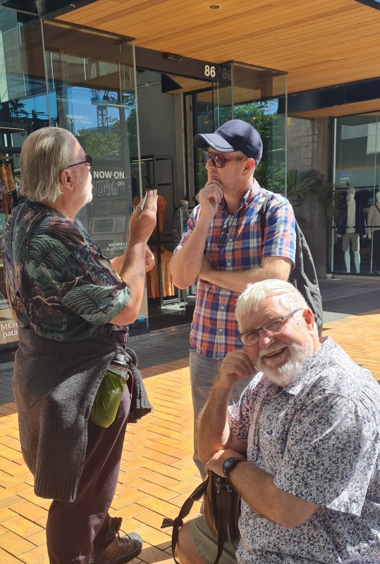 On the Friday just been, there was a spring-like feel in the air. Nice sun, but a gusty wind. Roger didn’t set up his flip chart, but Brian and Laura did. There were heaps of school kids out fundraising for something, and I noticed many of them were having gospel chats with our team as well! (as per the pics)