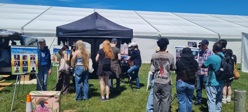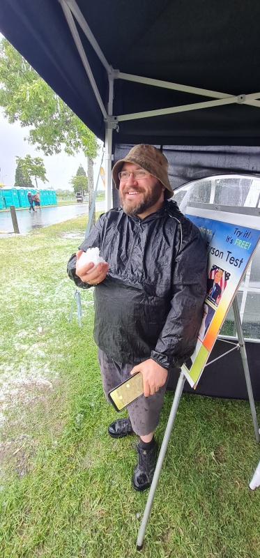 The weather was great on the 2nd day, which was the busiest day anyway. The morning and early afternoon of the 3rd day was great too, but then an intense thunder / hail storm hit. It killed the rest of the afternoon, as everyone left, running for their cars. We were huddling under our gazebo, when a kid ducked in for cover too. He was right in front of me, and so I asked, “hey man, can I ask, what do you think happens after life?”. “Nothing”. “So, you don’t believe in God?” “No”. “But, if I told you the ferries wheel made itself would you believe me?” “No”. “Right, so, wouldn’t this universe have to have a maker too?”. He stared at me and then he bolted. Haha, he’d rather face the storm than stay in shelter with me talking about the true God of justice he knows exists!