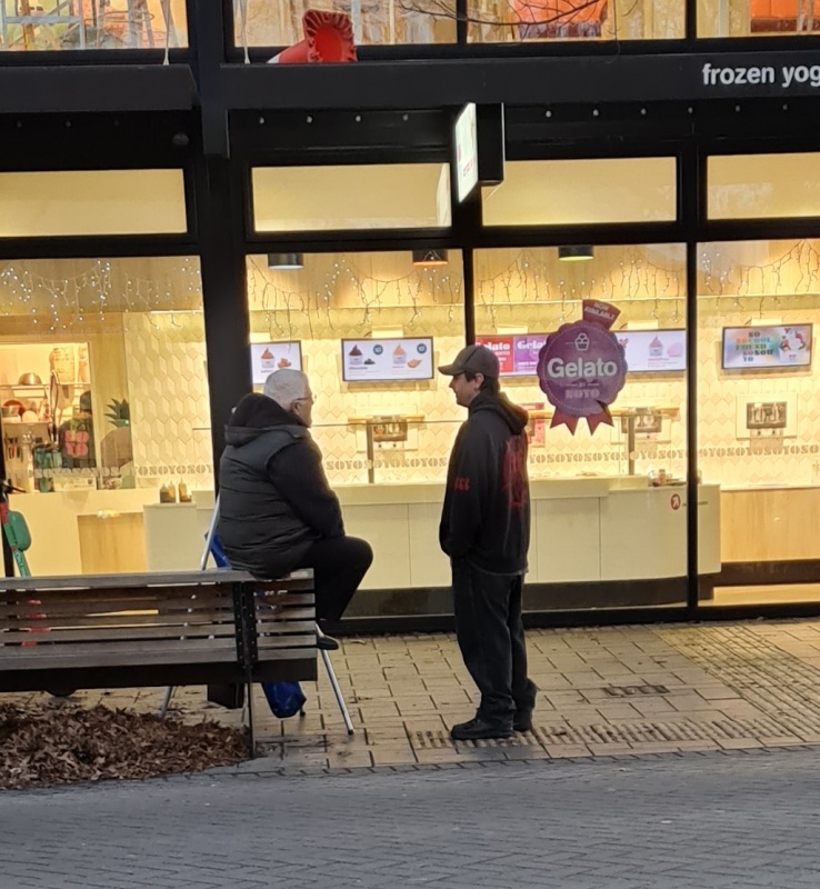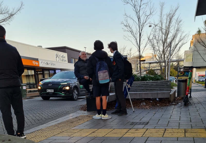 On Tuesday, Roger and I were at Riccarton. This outreach was so long ago now that I can barely remember the details. I’m sure I had some chats! But I remember 2 things: 1) It was cold and got dark early (we have now passed the shortest day), and 2) Roger was having heaps of good chats! (I tried to take some snaps, attached to this report).