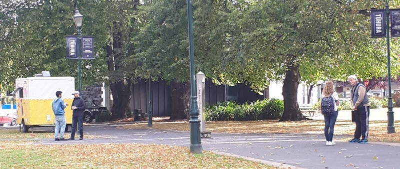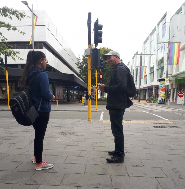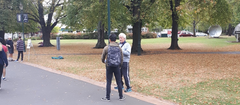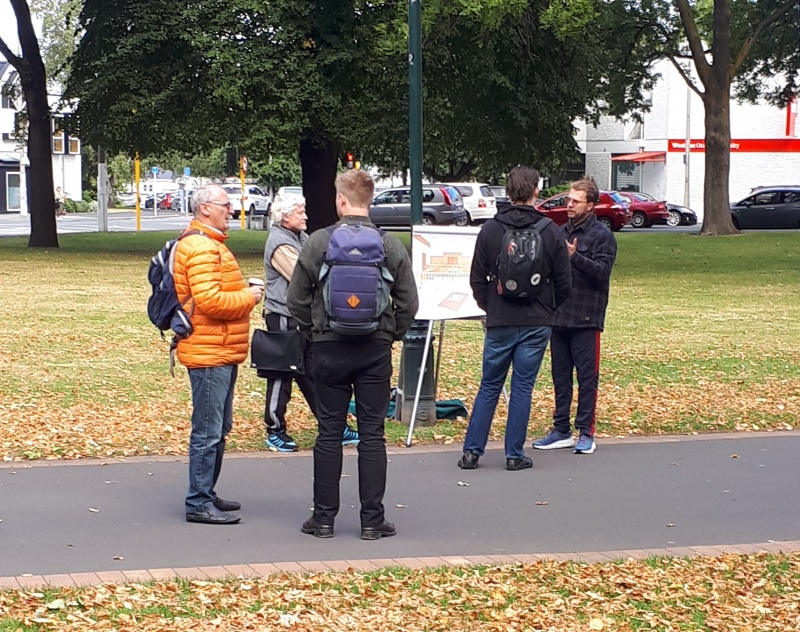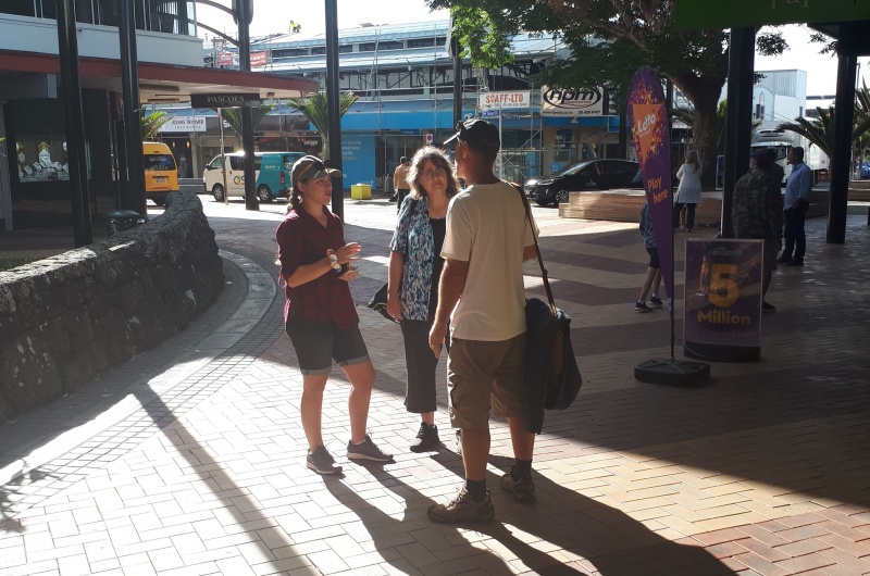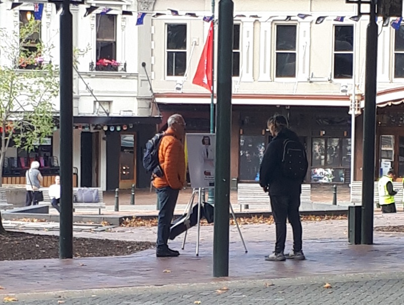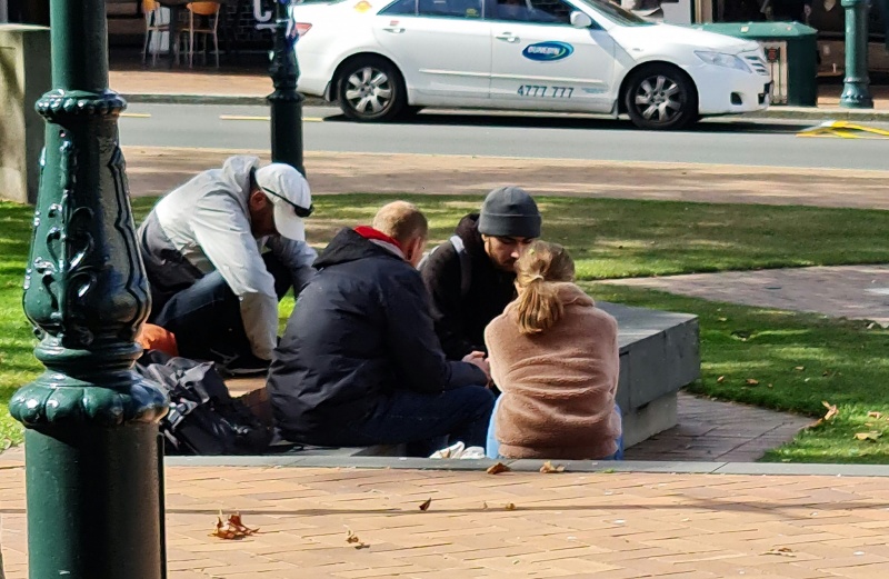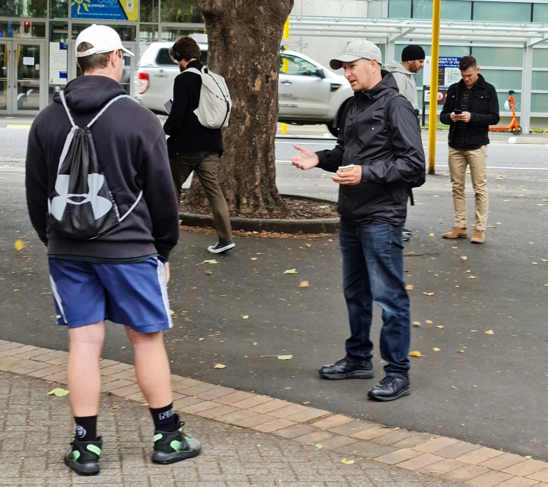 After some time at the Bridge, we followed the same track backwards to the Square.  One conversation that really stood out for me was one Craig and I had with an older guy from Ashburton.  He was happy to talk and it turned out he was a Christian.  We chatted for a bit, and then I said, “please don’t be offended, but because I don’t know you, I want to check - why can God let us into heaven?”  (I wanted to know what he thought it meant to be a Christian.)  Well, he got offended!  “I’m not answering that, I’m a Christian, I’m not interested in debates.”  We chatted some more, and I tried again - but he shut me down.  Bemused, we parted ways soon after that.