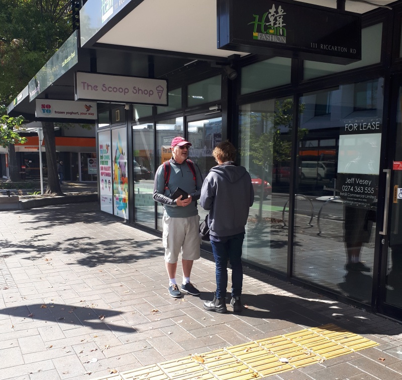 The bus stops weren’t busy - four evangelists was a bit much saturation!  So a couple of us stayed at the bus stops, while the other two went searching down Papanui Road.