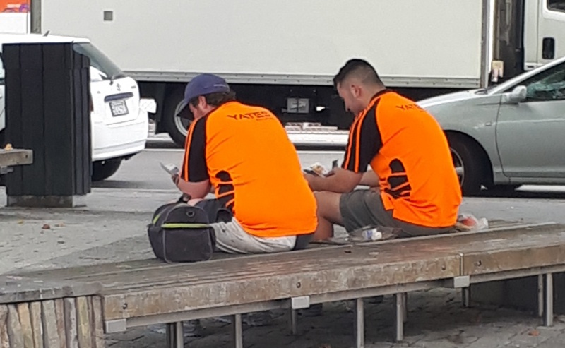 After lunch we went to Tikipunga for a change of scene.  As we parked the car, I noticed two guys sitting on a bench in the shade, and I knew that would be a good conversation.  And it was, it was the best conversation of the whole week so far.  Because these two guys were so laid back, Phil and I were able to slow right down and really work through the law and gospel and make sure they really understood.  The checking questions were really powerful, and they seemed to be blown away by the gospel.  One of the guys said, “You’ve changed my mind”, and “I believe that Jesus died for my sins”.  But they were both very engaged.  They were pointed to the Bible and to Clark Road Chapel before they moved on.