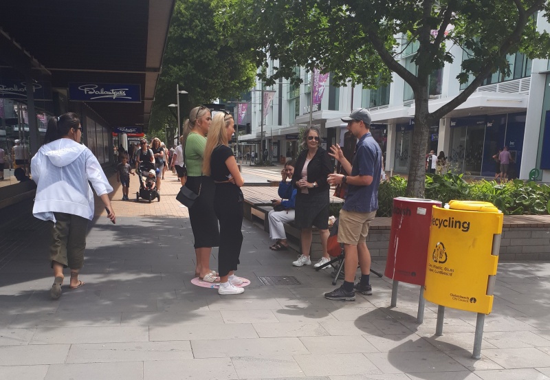 Later, a team of six were in Cashel Mall.  Two flip charts were running, tracts were being handed out, and plenty of conversations were occurring.  I had a tuff chat with a guy who has played indoor cricket for New Zealand.  It was a bit of an apologetics battle, but surprisingly I was able to get to the law and eventually the gospel - not that he was interested, sadly.