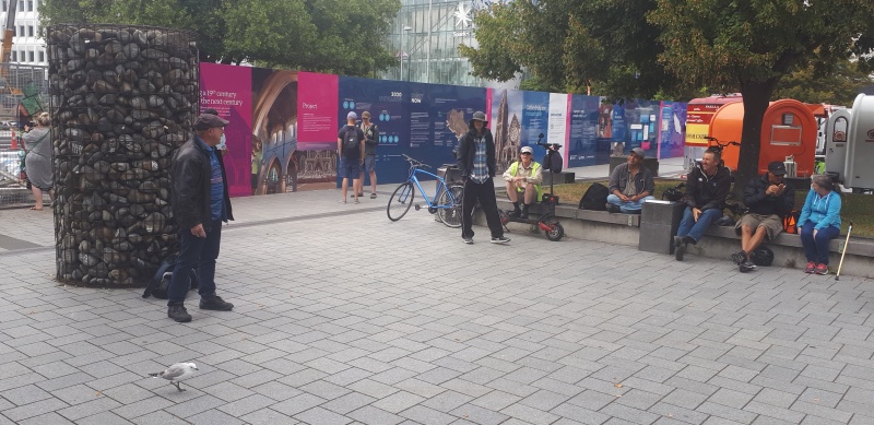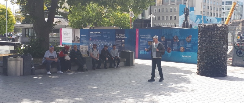 We were in Cathedral Square and Cashel Mall from lunch time and into the mid afternoon.  Andy preached wonderfully!  He’s turned a new leaf.  He is navigating the paradox of repentance and faith so clearly.  And he is handling the hecklers so respectfully, gently yet faithfully dealing with their questions one by one.  A week or so ago I wrote about a heckler who almost came to blows with another member of the public during Andy’s preaching.  Well, today he came up to Andy and shook his hand!