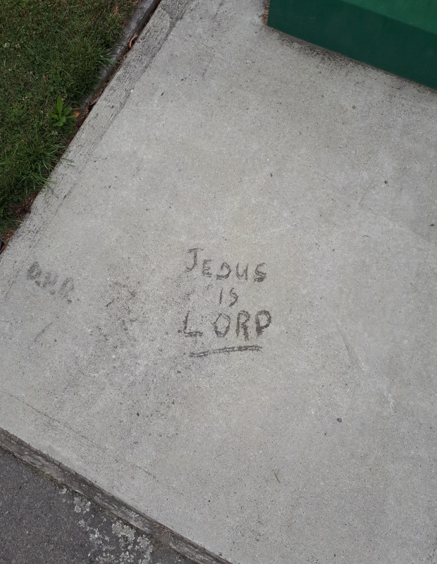 Near the end of the outreach, I struck a girl who was quite intellectual in nature.  For this reason I was completely upfront with her on why I was here (to tell her about Jesus) and asked if she wanted to talk about it.  She said that she would never be converted, but she was happy to talk about religion.  The conversation went completely off script, and yet I was able to explain the seriousness of sin via the law and the amazing grace of Jesus.