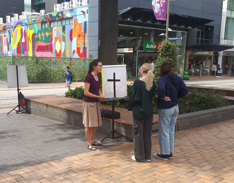 On Sunday afternoon, after church meeting, I headed into Cashel Mall for some street outreach. It was great to have Mike join me! I had three solid chats.