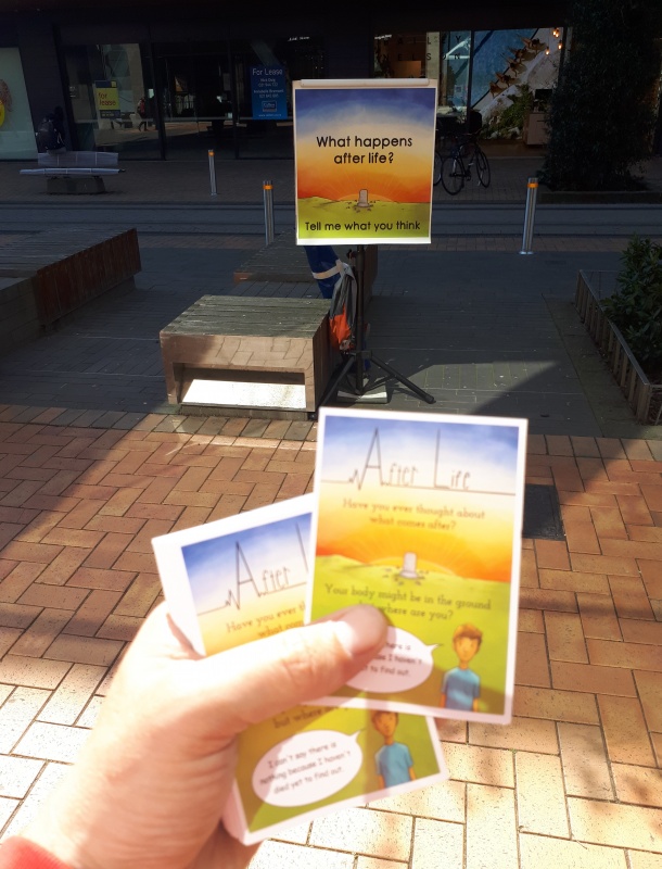 Andy got into a great conversation with some Christian kids out doing healing evangelism, he pulled me into the conversation and we ended up giving them a demo of the flip chart and how the gospel message is the only power of God to save. Healing and apologetics are great - but they don’t save people. Only God does, and he condescends to do so through us sharing the gospel. It was a great chat, and there were handshakes all round. I invited them to get in touch and join us out on the streets!