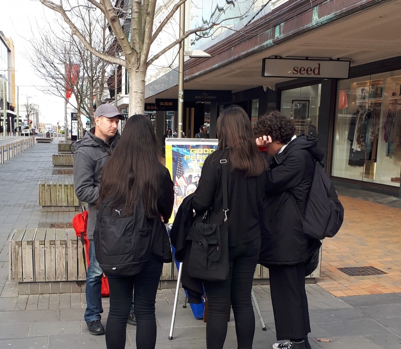 Back to nice weather on Saturday in Christchurch (NZ). After Andy and I interviewed James White for the Tell Me Evangelism Conference I headed into the city for a couple of hours of outreach.