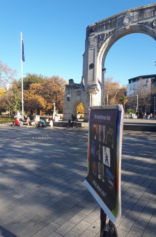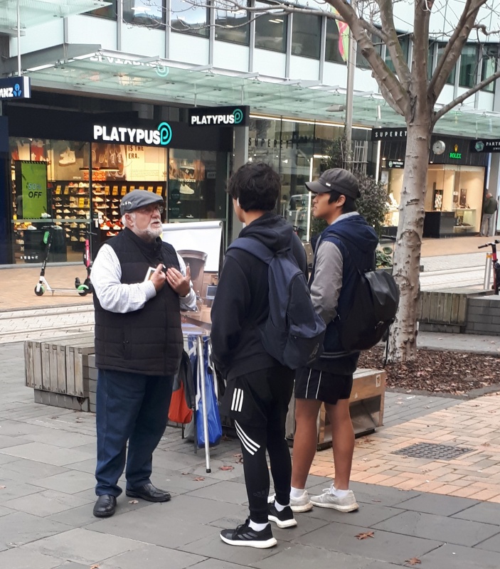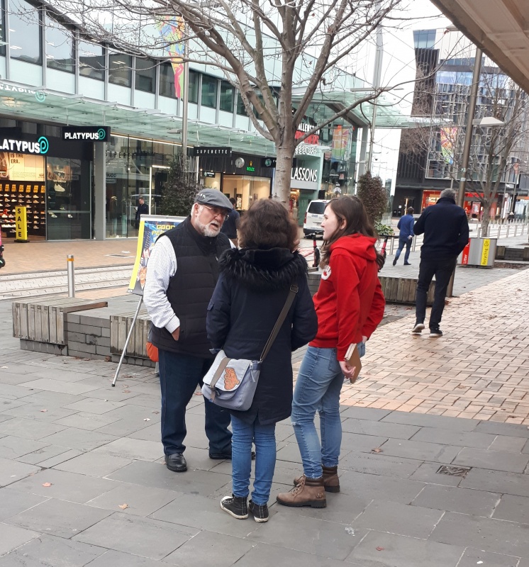 Tuesday started with some online evangelism, before heading to Riccarton for the weekly street outreach there. Roger wasn’t with me this time, so I decided to dispense with the flip chart and roam.