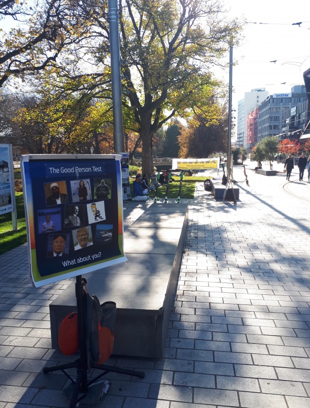 Three other groups came to set up beside me: Falun Gong (very dedicated to street “evangelism” in Christchurch), Hare Krishna (I’ve shared the gospel with one of the leaders a number of times over the recent years, and we are friendly), and a group protesting the CCP involvement in Hong Kong. For people walking past, they had to walk the gauntlet! And I was right in the middle of it.