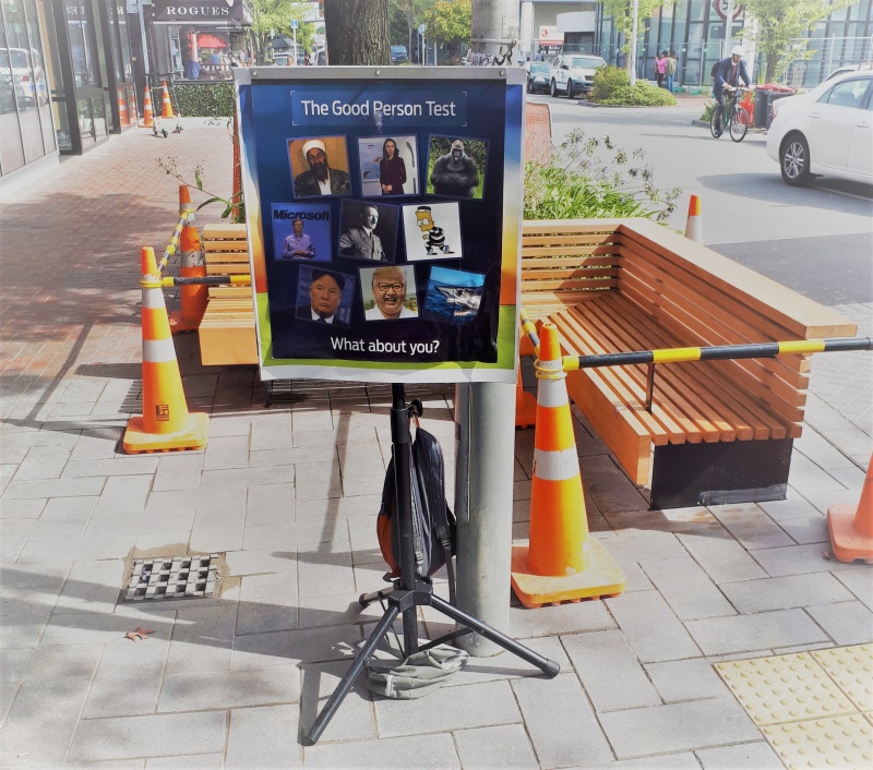 In the afternoon, we were at the corner of Cashel Mall and Colombo Street. I got into a gospel conversation with a lady handing out flyers for Uber Eats. She had listened to many of my gospel conversations on Wednesday, and had received a tract. But now I was able to talk with her directly.